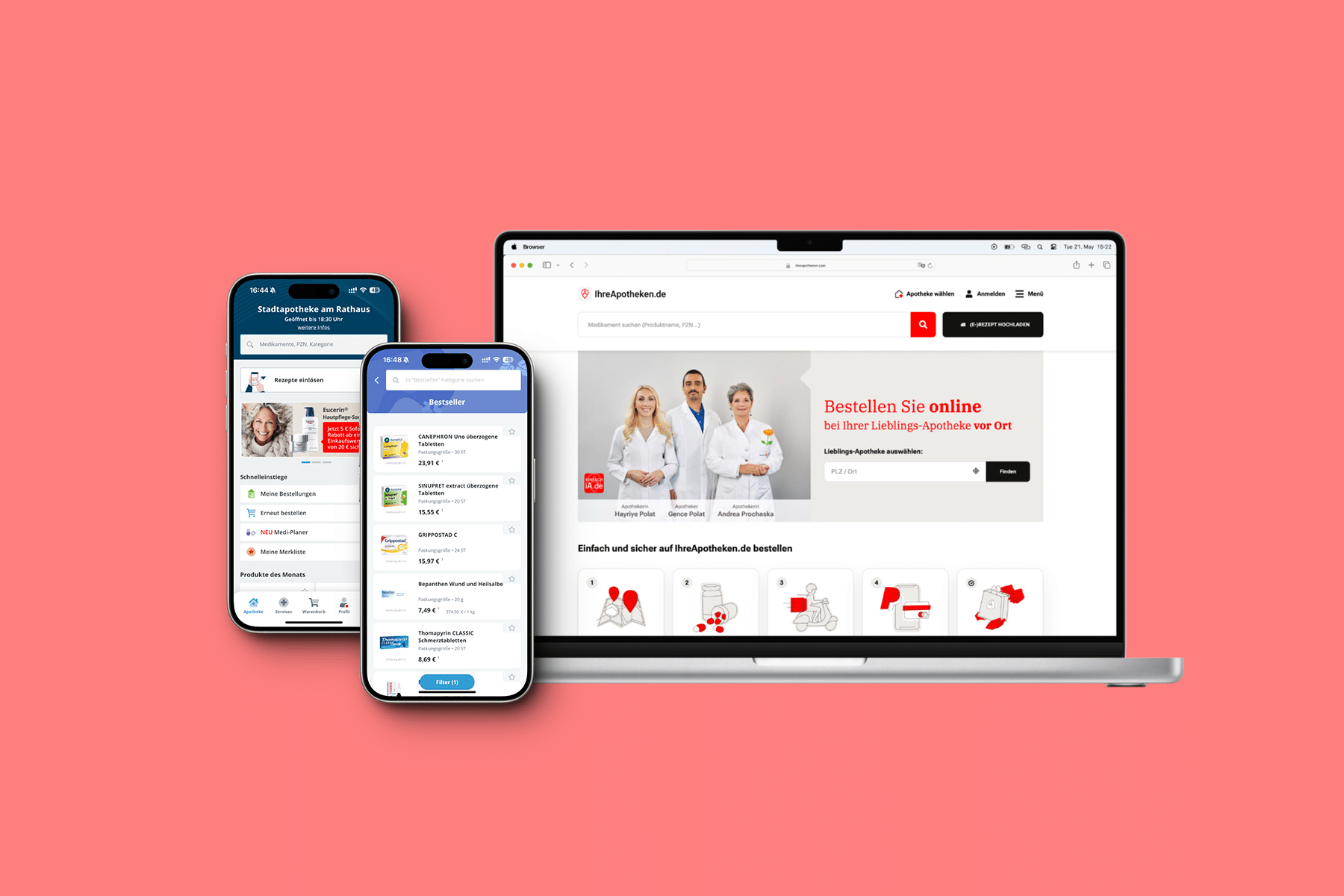 Wir haben mit ihreapotheken.de eine bahnbrechende Plattform entwickelt, die den Apothekenmarkt digital transformiert. Unsere Lösung ermöglicht es Kunden, Medikamente und Apothekenprodukte bequem online bei lokalen Apotheken zu bestellen. Durch die Integration von Funktionen wie E-Rezept-Unterstützung, Botendienst und einer sicheren Online-Zahlung über PayPal und Kreditkarte, haben wir eine nahtlose Benutzererfahrung geschaffen.